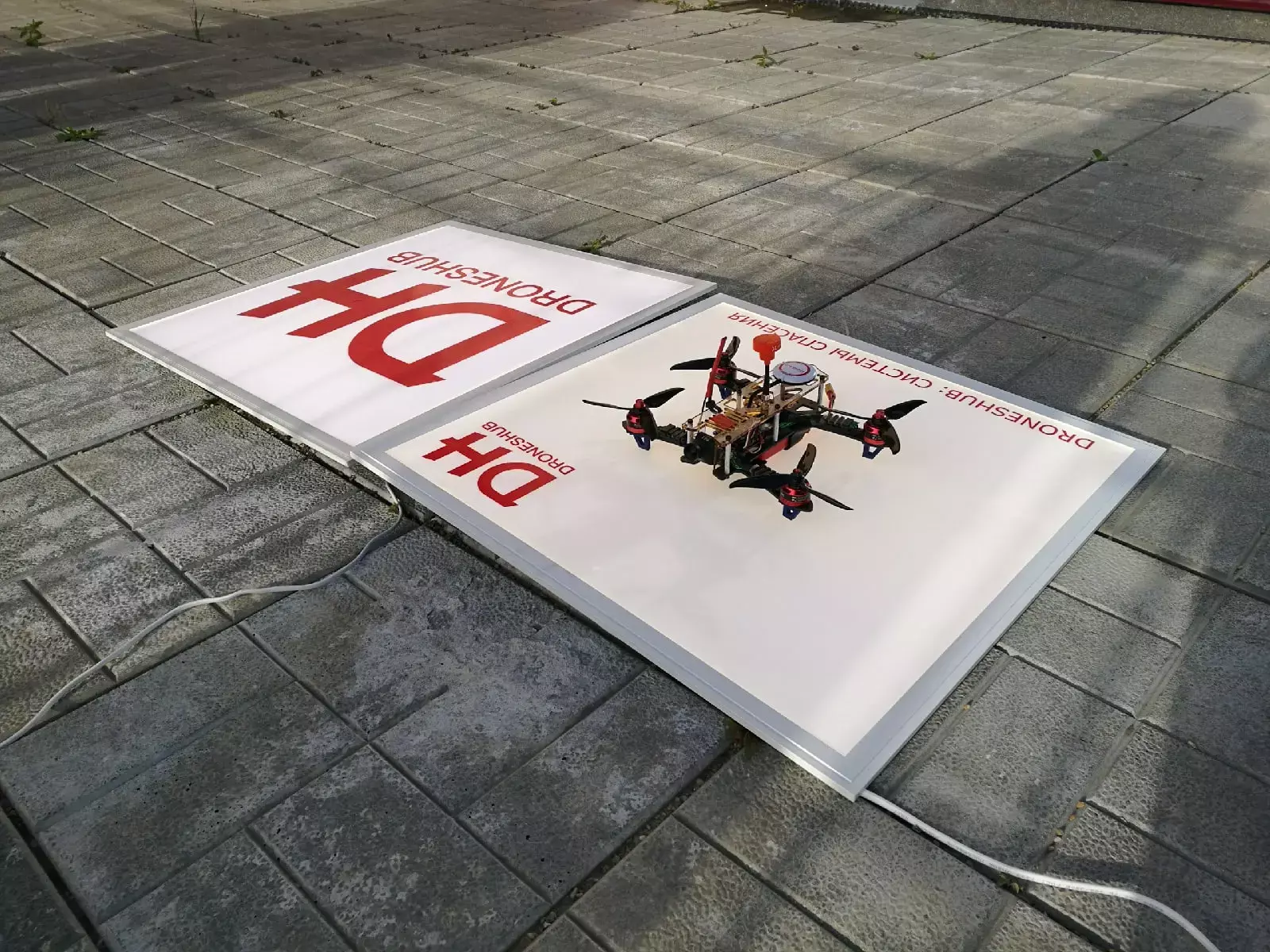 Взлётно-посадочное поле для дронов с подстветкой.