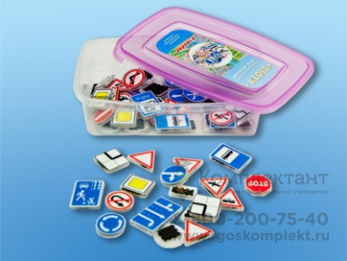 Комплект тематических магнитов предназначен для моделирования на магнитно-маркерных досках различных дорожных ситуаций с учетом значений дорожных знаков и наглядной демонстрации обучающимся правил дорожного движения.