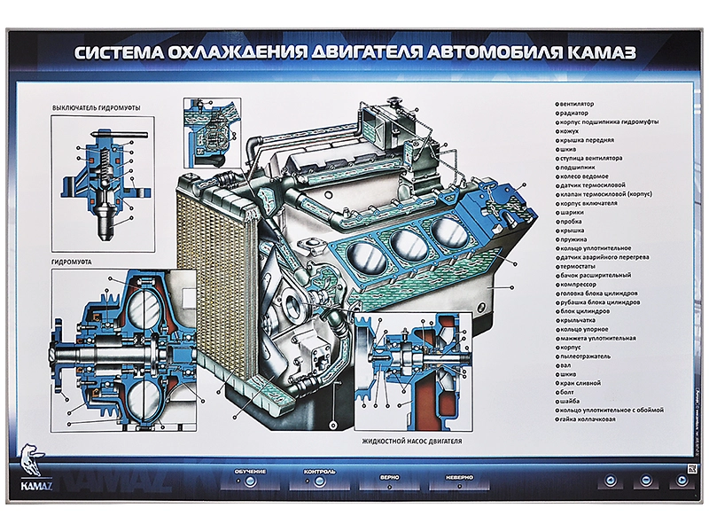 Интерактивный стенд предназначен для наглядного изучения системы охлаждения двигателя автомобиля КамАЗ.