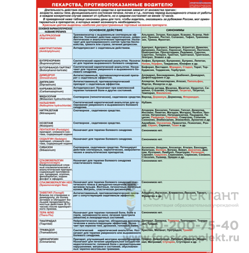 Стенд "Лекарственные средства, противопоказанные водителям" 680х970мм пласт.