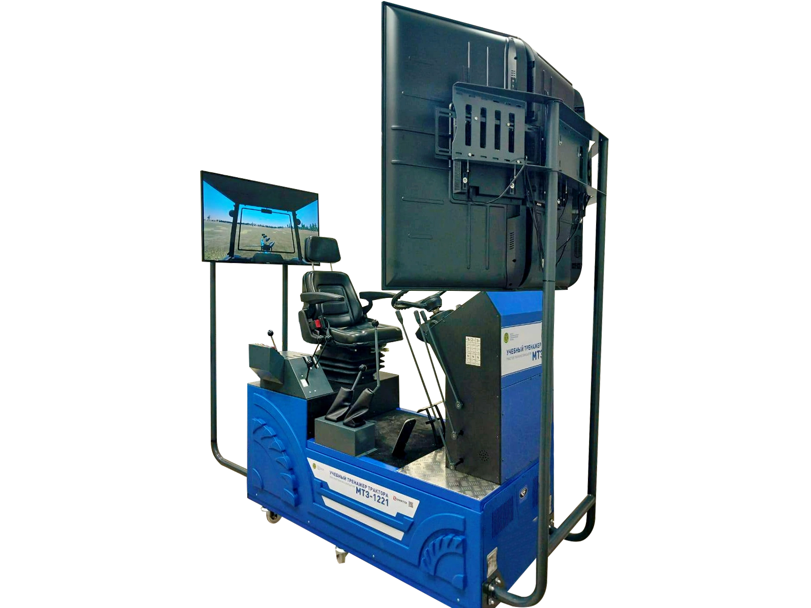 Тренажер предназначен для обучения вождению кандидатов в операторы сельскохозяйственных машин, обеспечивает максимальное приближение к условиям работы водителя реального трактора с навесным. Помогает выработать базовые физические навыки работы с органами управления сельскохозяйственного трактора: правильная работа рулем, педалями и рычагами управления, правильное руление, маневрирование с навесным сельскохозяйственным оборудованием, пользование контрольно-измерительными приборами и бортовым пультом управления трактора МТЗ-1221.