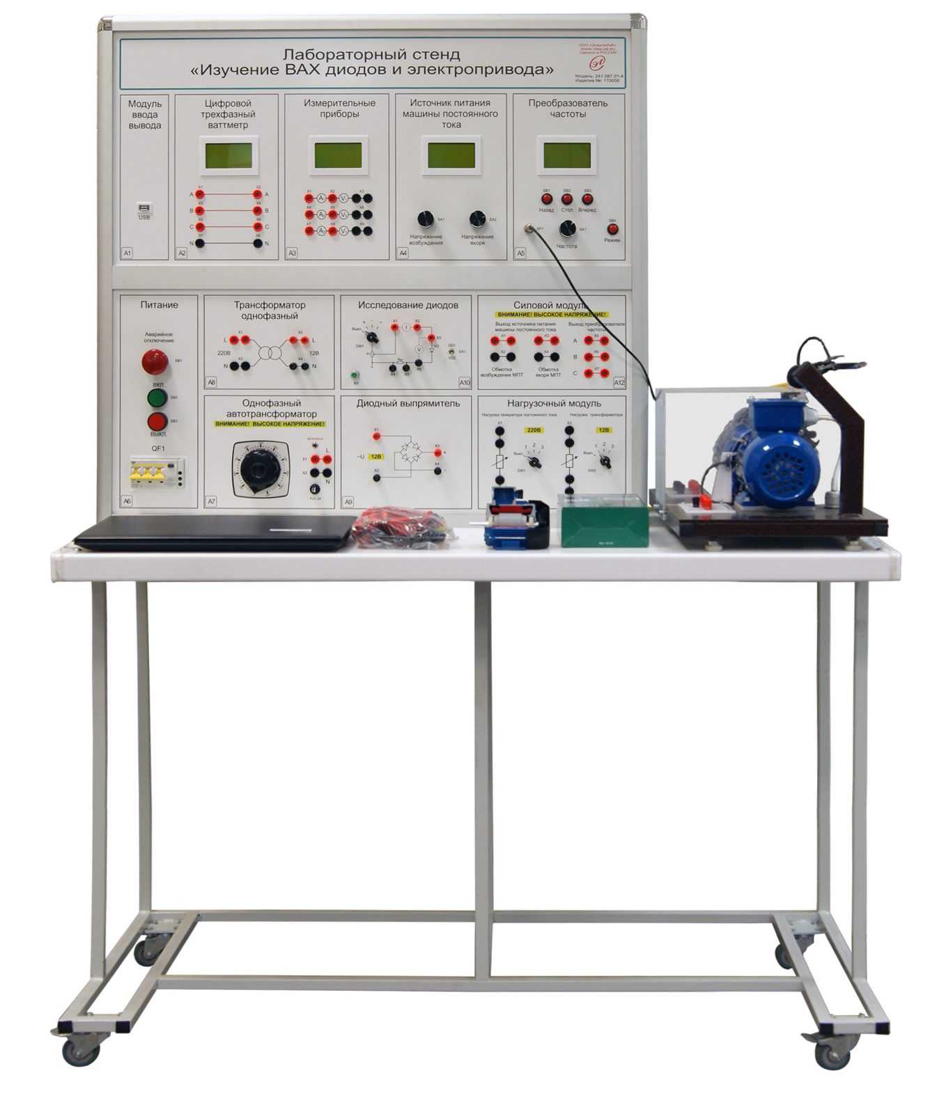 Комплект учебного лабораторного оборудования «Изучение ВАХ диодов и электропривода» предназначен для проведения лабораторно-практических занятий в учреждениях начального профессионального, среднего профессионального и высшего профессионального образования, для получения базовых и углубленных профессиональных знаний и навыков.