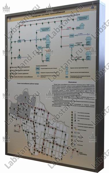 Назначение: Стенд-планшет предназначен для изучения принципа действия приборов и составных элементов городской системы газоснабжения.