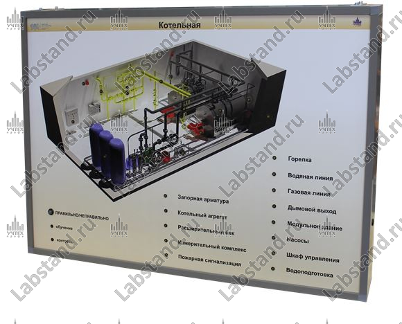 Назначение: Стенд-планшет предназначен для изучения принципа действия приборов и составных элементов котельной.