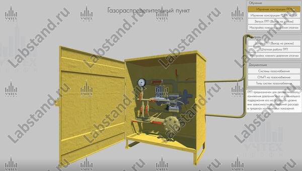Назначение: Предназначен для проведения групповых практических занятий и самостоятельной работы учащихся. Обеспечивает изучение устройства и принципа действия газорегуляторного пункта.