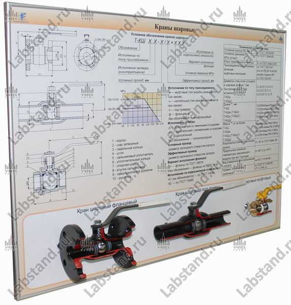 Назначение: Стенд-планшет предназначен для изучения конструкции кранов шаровых и их составных элементов.