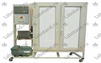 Учебный стенд содержит систему сбора данных и комплект датчиков, позволяющих определять температуры хладагента на входе и выходе конденсатора и испарителя первого контура охлаждения, температуры пропиленгликоля на входе и выходе воздушно-водяной теплообменника второго контура охлаждения, температуру окружающего воздуха в камере охлаждения, давление и температуру хладагента в линиях всасывания и нагнетания компрессора первого контура охлаждения.