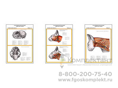 Плакаты ПРОФТЕХ Топограф. анатомия. Кошка. Голова и шея (3 пл, винил, 70х100)