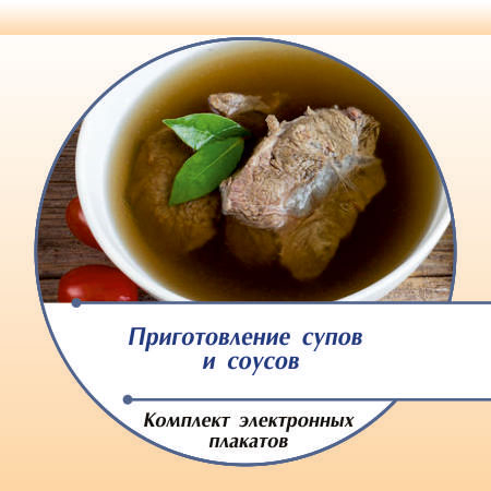 - Печатные плакаты «Повар-кондитер. Приготовление супов и соусов» для оформления кабинетов