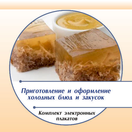- Печатные плакаты (таблицы) «Повар-кондитер. Приготовление и оформление холодных блюд и закусок» для оформления кабинетов