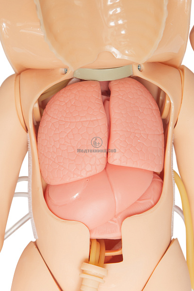 Тренажёр состоит из модели женского торса (от шеи до таза включительно) в натуральную величину, модели плода в натуральную величину и электронного контроллера. Полностью русифицирован.