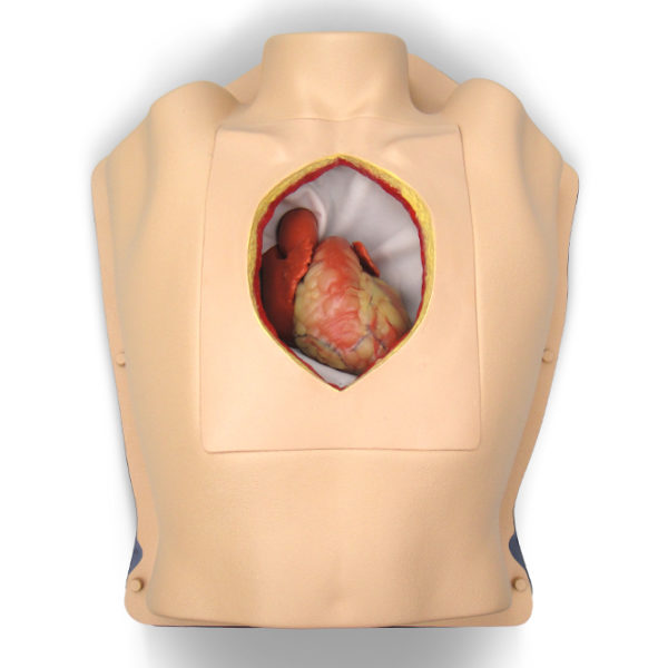Модель грудной клетки с готовым стернотомическим отверстием подходит для использования ретракторов и размещения различных моделей сердца (не входят в комплект).