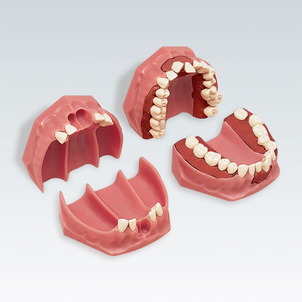 - Ортодонтическая модель имеет 8 неподвижных передних и 24 свободно устанавливаемых в зуботехническом воске в неправильной позиции зубов