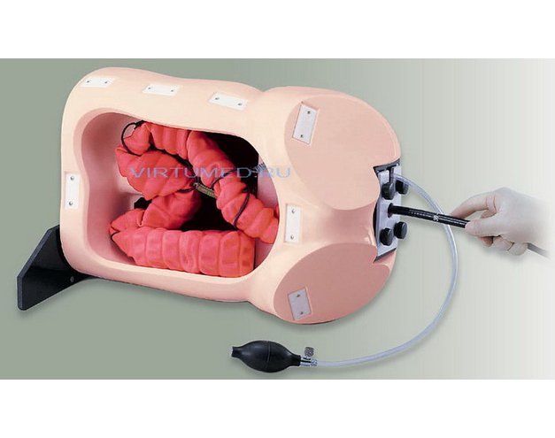 Мягкая гибкая трубка имитирует реакцию толстой кишки на использование колоноскопа, что необходимо для приобретения таких навыков, как предотвращение «петель» и их выпрямление для безопасного достижения слепой кишки. Открытие анального сфинктера осуществляется с помощью ручного насоса.