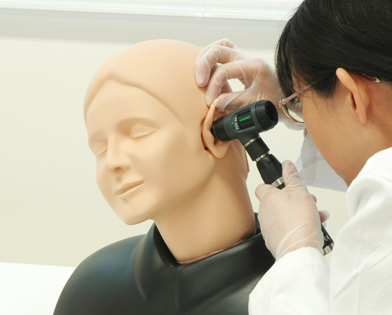 - тренажер укомплектован набором для обучения технике удаления инородных тел уха: имитированная ушная сера, мелкие предметы, мелкие кусочки губки, ложечка