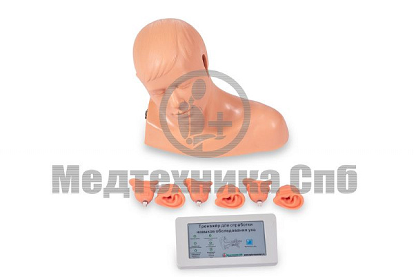 Муляж головы со сменными фантомами ушей, норма и патология с электронным контролером.