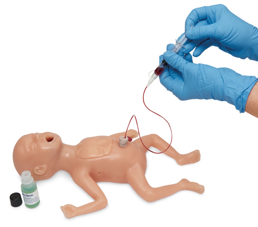 - съемная модель пуповины с возможностью канюляции (встроенный резервуар 5 мл для заполнения имитированной кровью)