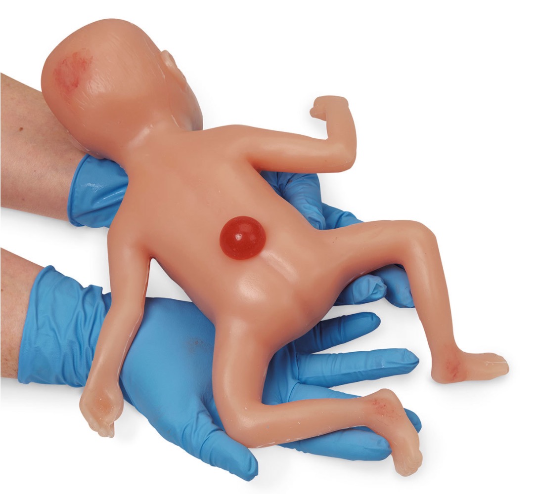 - манекен укомплектован накладными муляжами врожденных дефектов развития (омфалоцеле, миеломенингоцеле)