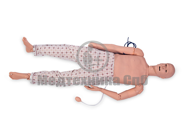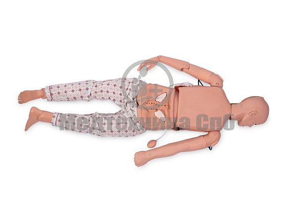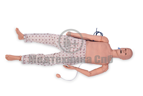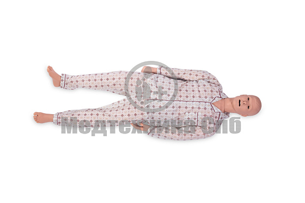 Манекен – симулятор взрослого человека в полный рост со сгибающими конечностями, имеет реалистичное строение ротовой полости, билатеральный пульс на сонной артерии, контролируется преподавателем путем сжатия груши, контрастные зрачки. Имеются внутренние органы: сердце, лёгкие, печень и желудок.