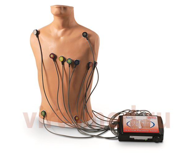 Размещение электродов возможно как справа, так и слева. Имеются точки для отведения ЭКГ от конечностей и отведения V1-V9. На фантоме нет сигналов ЭКГ, для имитации ритмов или дефибрилляции используйте ЭКГ-имитатор и ваш ЭКГ-монитор.