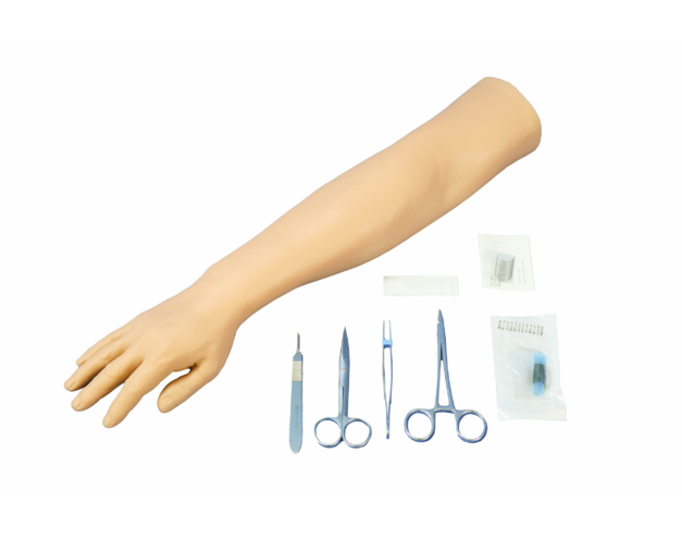 Реалистично выполненный фантом руки и ноги взрослого человека с детально выполненной анатомией и реалистичной на ощупь кожей предназначен для демонстрации и практики техники наложения швов.