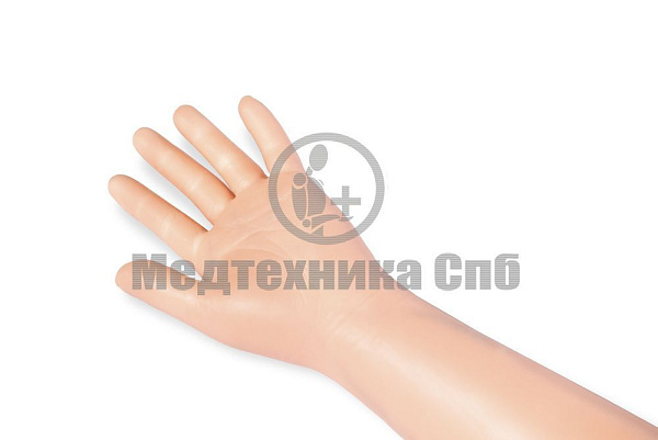 Реалистичная модель руки. Покрытие из материала, визуально и тактильно напоминающего кожу человека, и симуляция пульса на лучевой артерии.