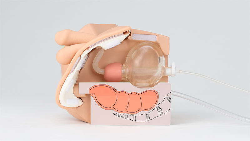 - Корпус тренажера можно отсоединять; уретральный канал и мочевой пузырь прозрачные. Это позволяет контролировать состояние введения катетера в уретральный канал и баллона в мочевой пузырь.