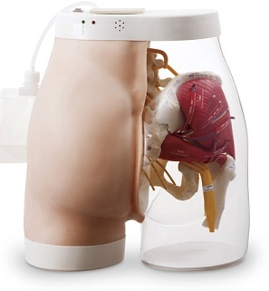 Встроенный контроллер с индикацией выполнения инъекций показывает, насколько правильно была сделана инъекция. Если инъекция выполняется в неправильное место, либо слишком глубоко, загорается красная лампочка и раздается звуковой сигнал, также загорается лампочка нерва, соответствующего месту, где была допущена ошибка. При выполнении инъекций в правильные точки загорается зеленая лампочка. Модель была создана с целью практики навыков инъекций так, чтобы исключить ввод иглы в нервы и вены. Модель содержит следующие анатомические ориентиры: среднюю ягодичную мышцу, нервы, вены, гребешок подвздошной ости, большой вертел бедренной кости, которые позволяют путем пальпации убедиться в правильности точек инъекций.