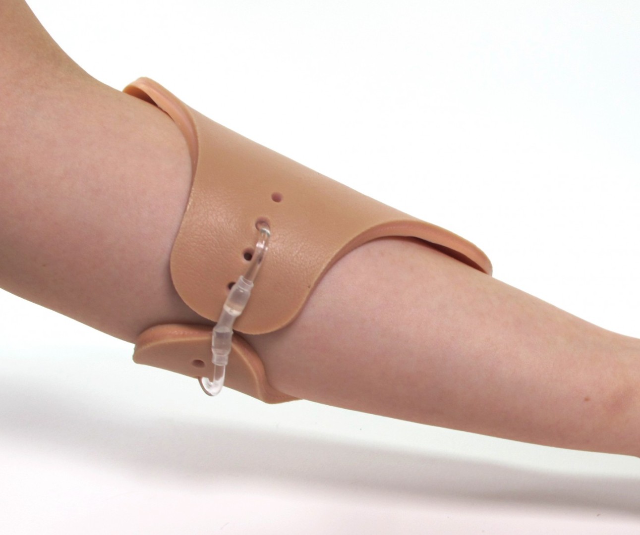- Отверстия по краям подушечки и специальное кольцо позволяют фиксировать подушечку вокруг руки симулированного пациента или манекена