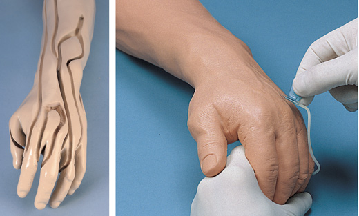 - подвижное запястье и реалистичные гибкие пальцы для придания правильного положения руке при выполнении инъекции
