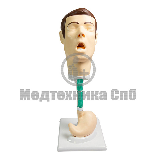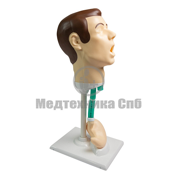 Тренажер представляет собой модель головы, герметично соединенную прозрачным пищеводом с желудком.