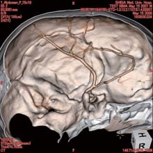 - Артерии с контрастом, средние (только левая половина) — HU 250