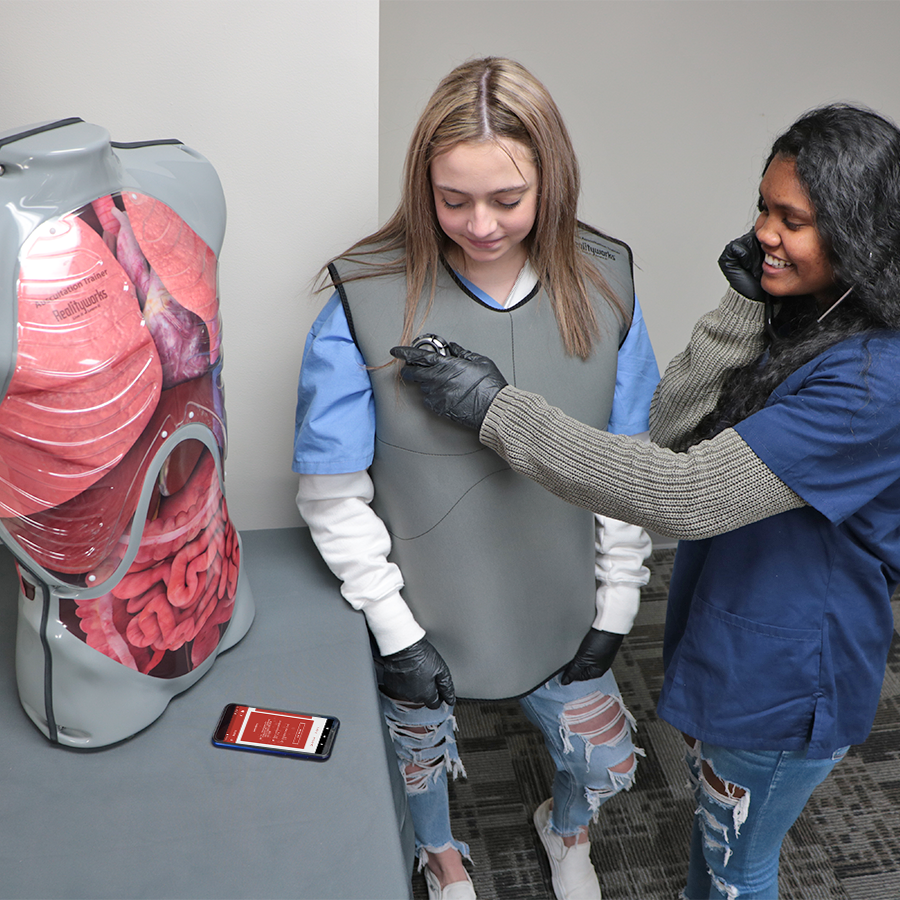 Этот нательный тренажер для аускультации помогает студентам отрабатывать навыки пальпации ребер, размещения стетоскопа и выслушивания звуков, а также навыки ухода за пациентом. Тренажер надевается на студентов, стандартизированных пациентов или манекены и предоставляет разнообразные возможности для отработки навыков. Студенты могут выслушивать тоны сердца, легких и кишечника, которые получают правильное звучание при прохождении через стетоскоп. Используйте планшет и приложение для создания индивидуальных практических занятий и сессий оценки.