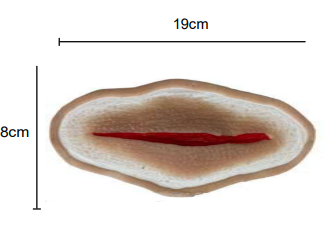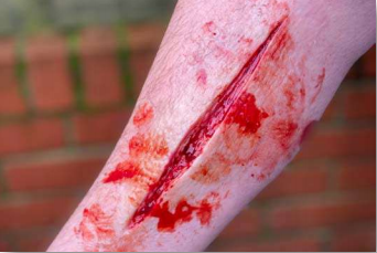 Прямой 6-дюймовый порез. Активно кровоточит при использовании кровопроводящей магистрали.