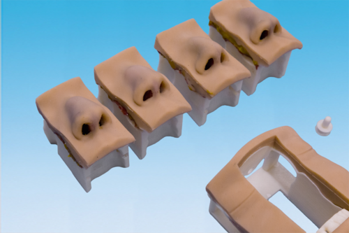 Данный симулятор выдающейся точности позволяет проводить обстоятельную ринопластику от начала до конца на многослойных тканевых структурах с возможностью реалистичных манипуляций с тканями и проведения надрезов на натуралистичных плоскостях рассечения. Доступны картриджи с тремя различными деформациями носа: горбинка/искривленная носовая перегородка, искривленный нос/после травмы и южноазиатский/грушевидный нос и др.