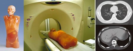Моноблочный антропометрический фантом поясницы с анатомическими структурами позволяет различные подходы КТ включая винтовой просмотр. Наряду с современными синтетическими костями, мозгом с мозговыми желудочками, глазными шарами, легкими с трехмерным легочным сосудом, трахеей, печенью с портальными и печеночными венами, почками, желчным пузырем, поджелудочной железой, селезенкой, аортой, полой веной, мочеточником, мочевым пузырем, простатой, прямой кишкой, залита сигмовидная ободочная кишка. У каждого отдельного органа есть специфическое количество Хаундсфилд, которое переписывается количество человеческого тела. Оригинальный призрачный материал с радиационным поглощением, приблизительным к человеческой ткани, позволяет просматривать под фактическими клиническими условиями.