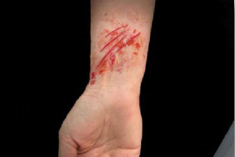 2-дюймовые умышленно нанесенные себе раны с помощью тонкого лезвия