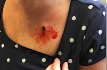 Чистое входное отверстие ранения малокалиберной пулей.