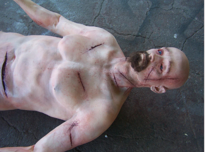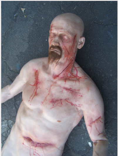 Тело этого мужского анатомического манекена изготовлено из вспененного каучука и покрыто резаными ранами. Манекен с качественными глазами, растительностью на лице и бровями.