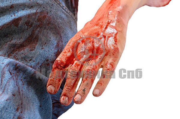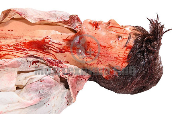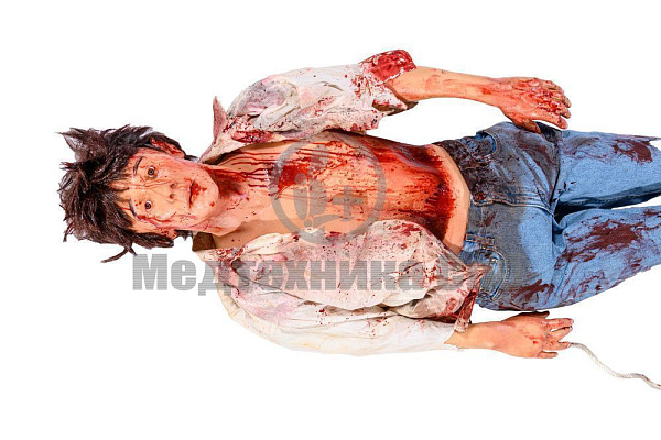 Покрыт рваными ранами с имитацией кровотечения.