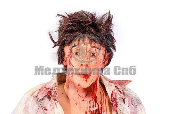 Манекен имеет внутри стальную арматуру, фиксирующую руки и шею к телу. Ноги тканевые, имеют стальную арматуру внутри себя, принимают различное положение, заполнены синтетическим волокном. Тазовая часть тканевая, заполнена синтетическим волокном. Вращение в плечевых суставах отсутствует.