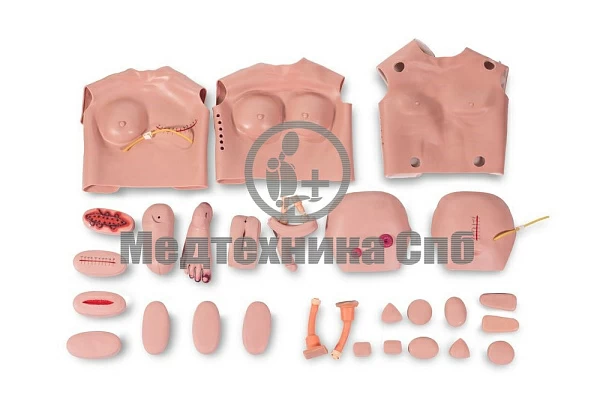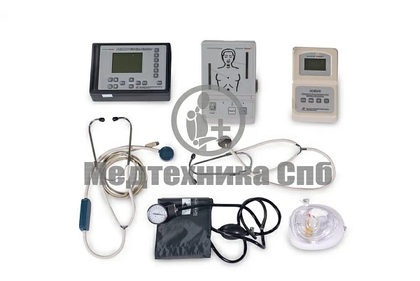 Тренажер жизненно важных функций организма: аускультация; специальная модель кожи грудной клетки для обучения ЭКГ; модель кожи живота для аускультации; тренажер жизненно важных функций; модель электронного фонендоскопа; внешний сетевой адаптер и т.д.