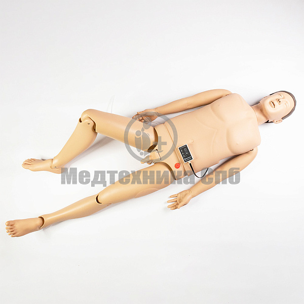 НИКИТА II Манекен-симулятор полноростовой для отработки навыков сердечно-лёгочной реанимации с дополнительной головой для интубации, рукой для внутривенных и внутримышечных инъекций и внешним световым контроллером. Отработка переворота в устойчивое боково