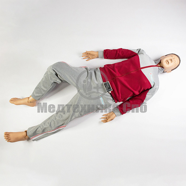 Состоит из полноростового манекена взрослого, модуля головы для отработки навыка интубации, модуля руки для отработки внутривенных и внутримышечных инъекций, электронного контроллера.