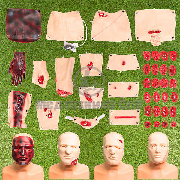 Состоит из полноростового манекена взрослого пострадавшего, расширенного набора модулей-симулянторов для имитации травм и ранений, электронного контроллера и комплекта экипировки.