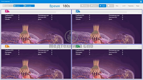 Удобство для экзаменатора. Результаты СЛР выводятся на большой монитор (диагональ 55"). В учебном приложении можно с легкостью переключаться между несколькими вариантами представления результатов.