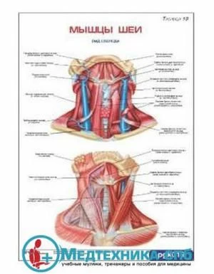 019 Мышцы шеи. Вид спереди. (русский/латынь) (арт. 19)