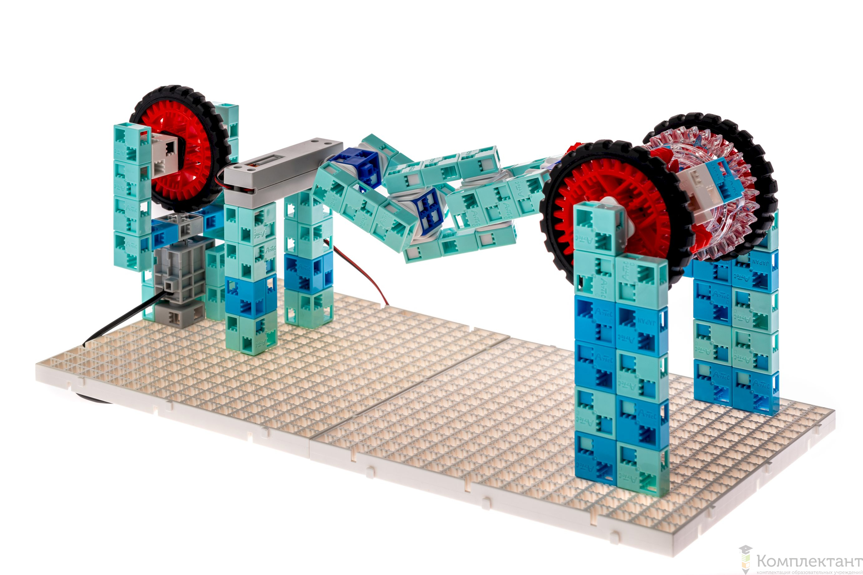 — Сборке действующих прототипов распространённых механизмов из универсальных, а не уникально специализированных деталей