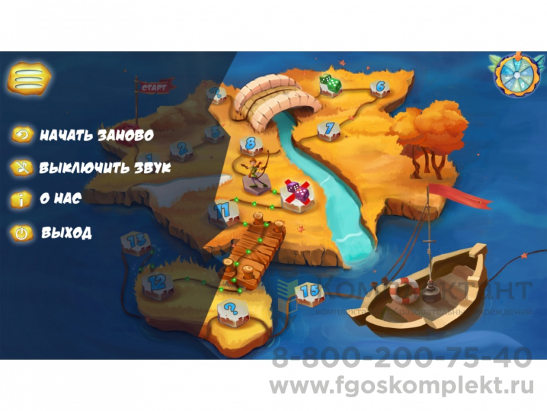Участники активируют вращающуюся стрелку, которая указывает на число клеток, которые пройдет фигура. Чтобы сделать ход, нужно правильно выполнить задание, основанное на проверке минимальных знаний, которыми должен обладать дошкольник. В случае неверного ответа фигурка возвращается на место, но ребенок видит, где ошибся и таким образом усваивает материал.