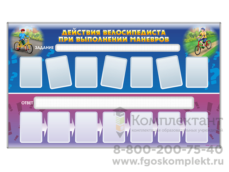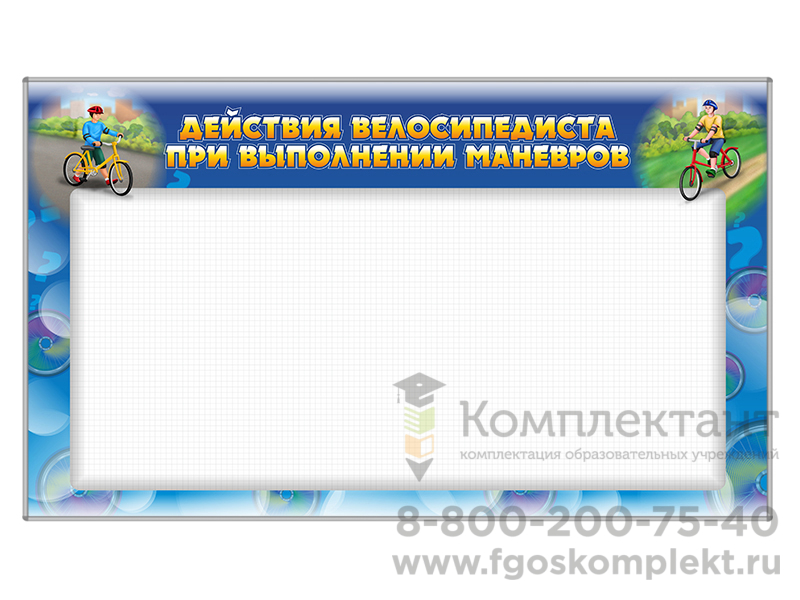 Доска магнитно-маркерная, двухсторонняя "Действия велосипедиста при выполнении маневров" + комплект тематических магнитов К1009, К1011